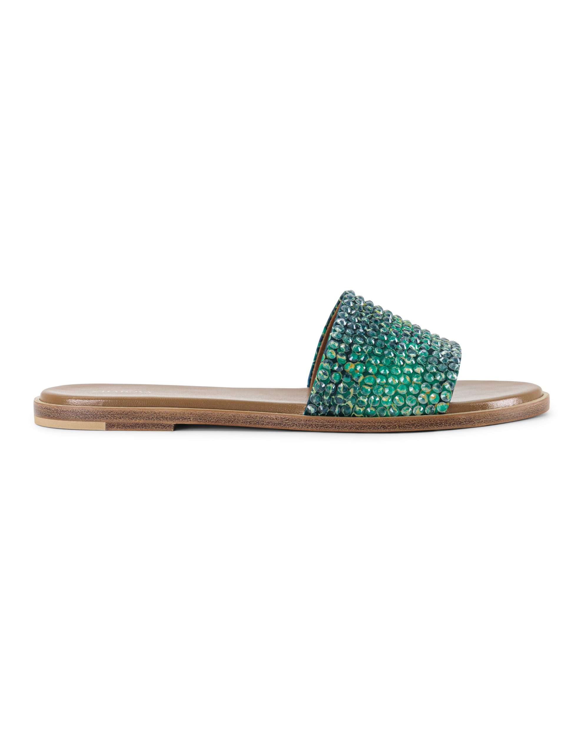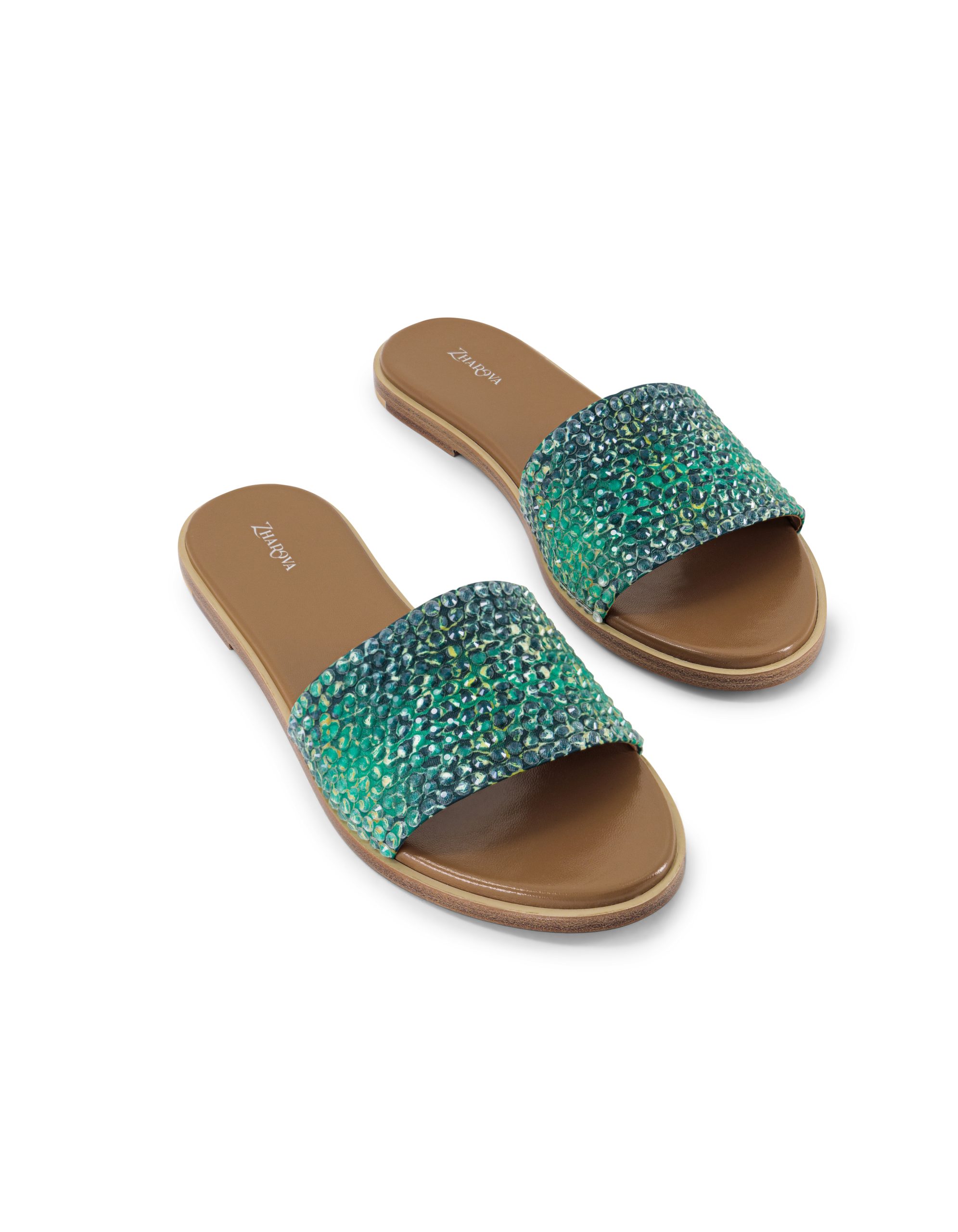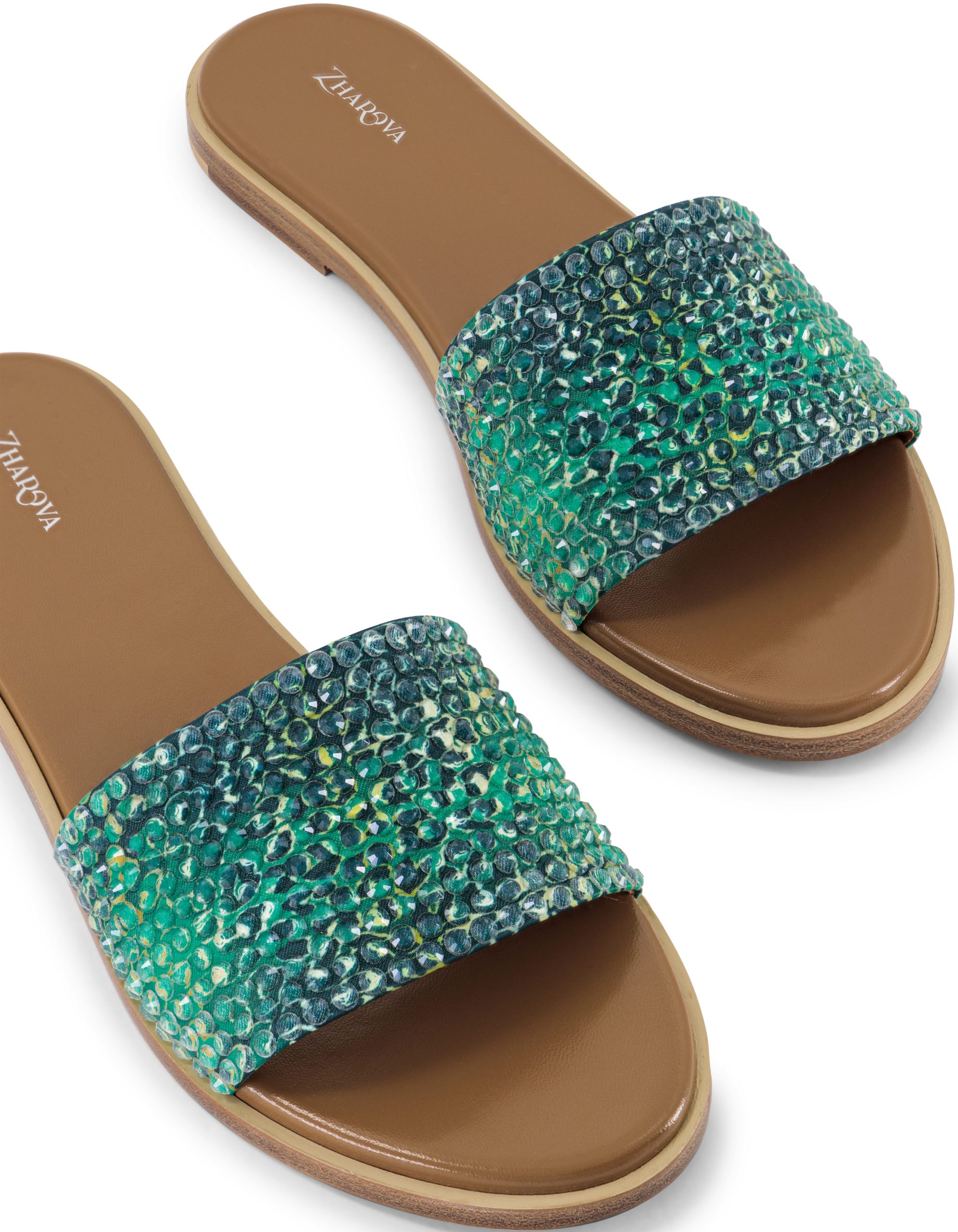 Highlights ● Green ● Leather ● Original crystal-embellished upper ● Custom leopard print ● Branded footbed ● Rubber non-slip heel ● Round open toe |
