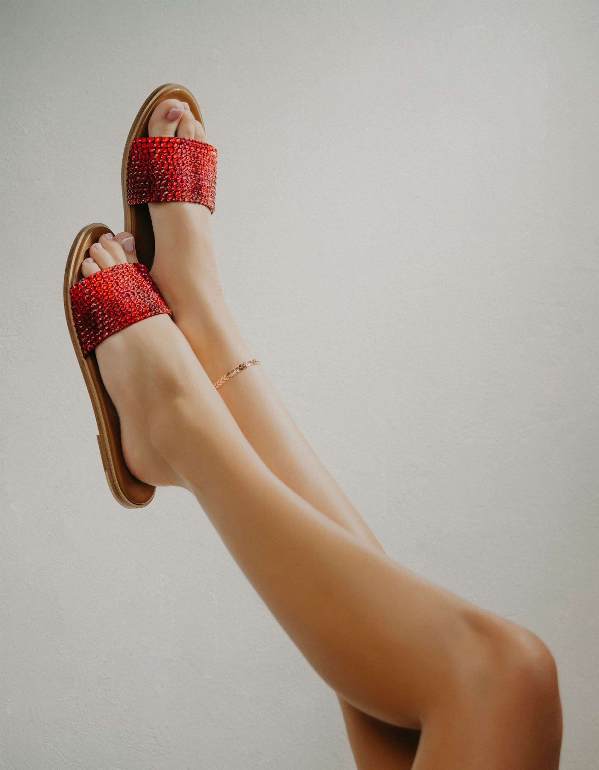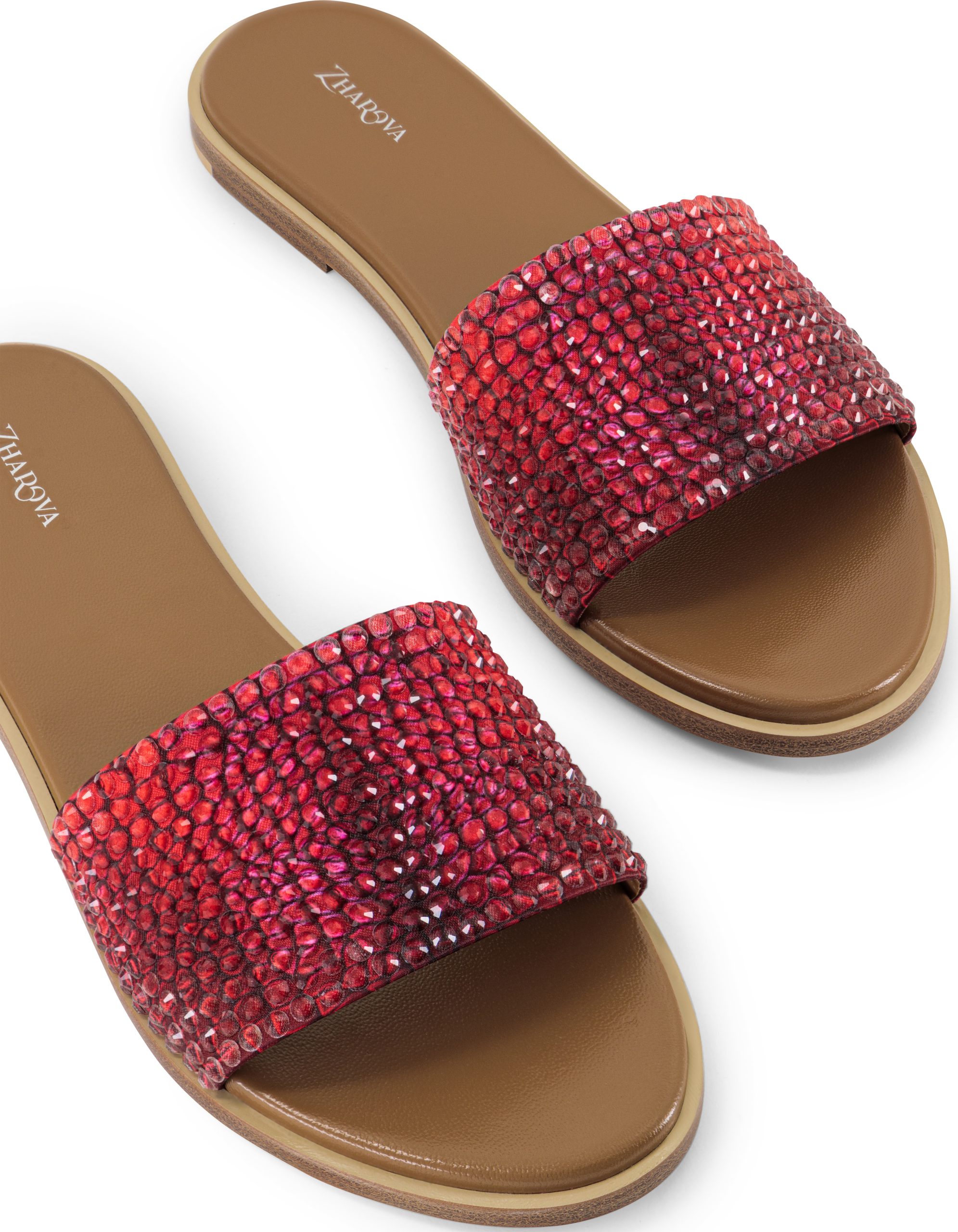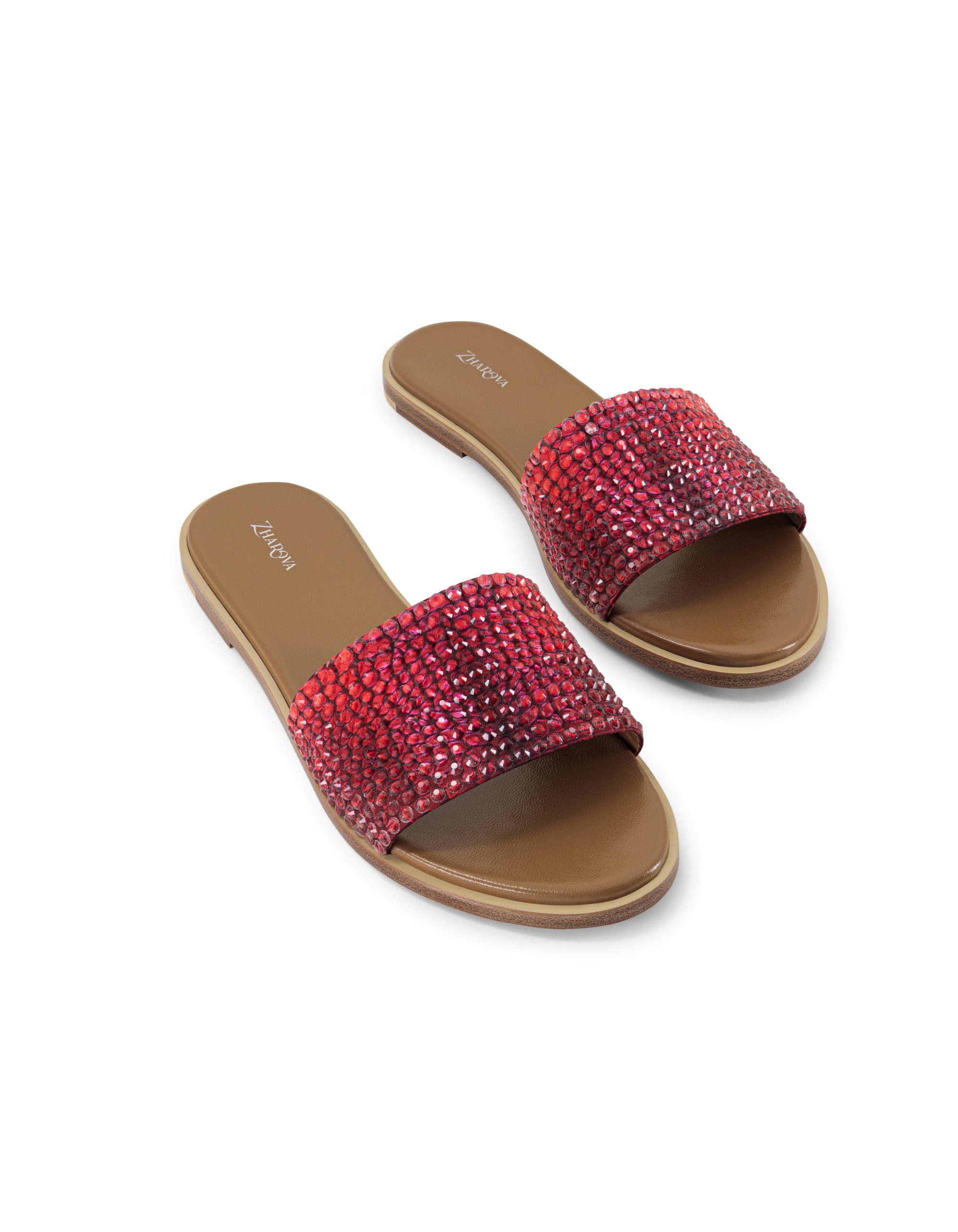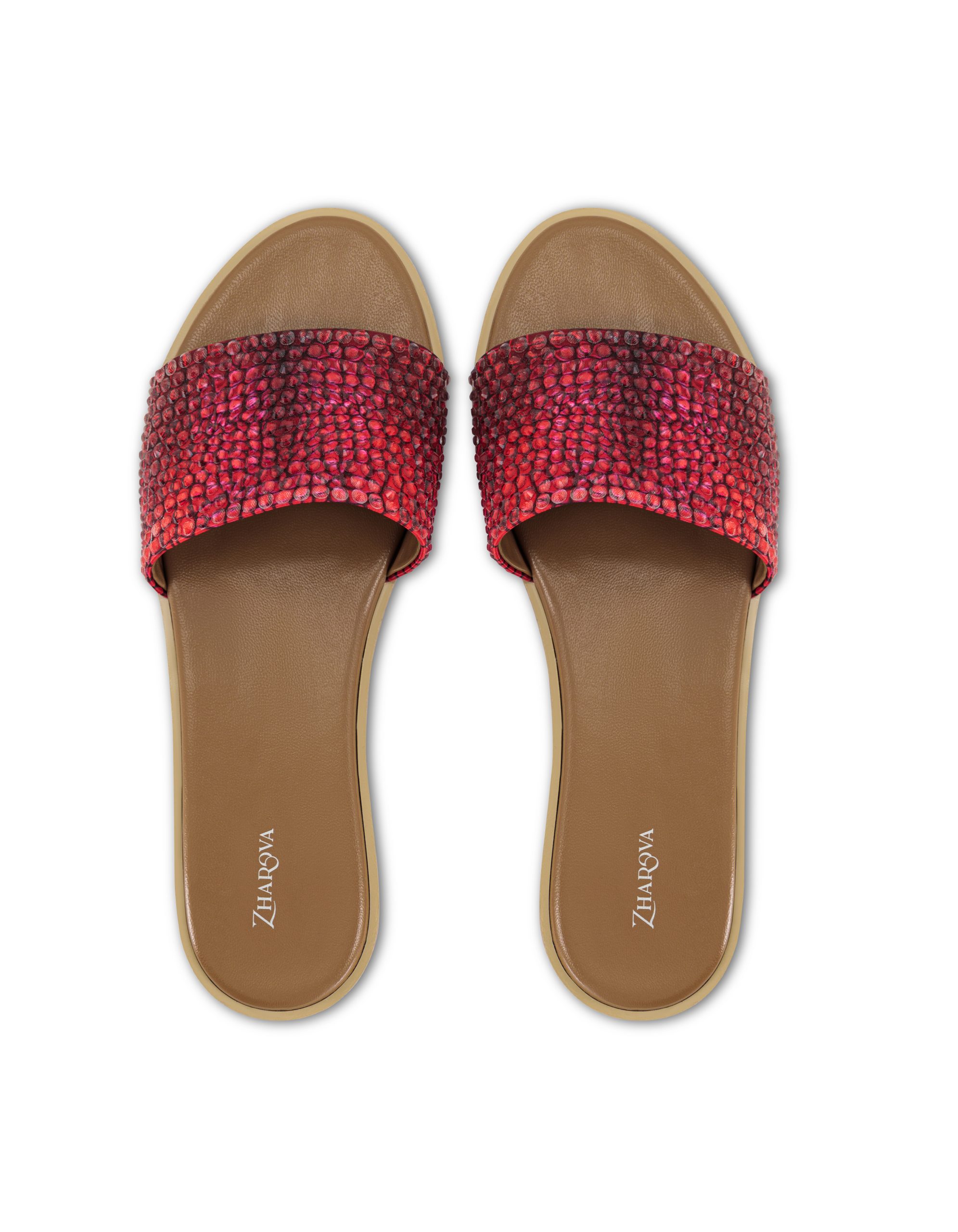 Highlights ● Red ● Leather ● Original crystal-embellished upper ● Custom snake print ● Branded footbed ● Rubber non-slip heel ● Round open toe |
